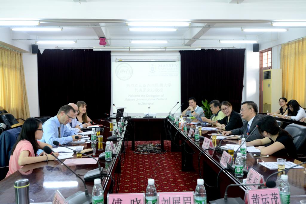 我校与梅西大学的合作洽谈会在行政楼508会议室进行,外事处处长姚圣梅主持会议。骆少明首先对梅西大学代表团的到来表示热烈的欢迎,并介绍了学校办学概况、办学特色、办学成果和国际合作与交流等情况。Peter Kemp教授介绍了新西兰梅西大学的基本概况,希望与我校建立更紧密的联系,探索“3+2”本硕连读项目合作新模式,并表示十分欢迎我校师生前往梅西大学进行交流访问。通过交流,双方商定在农学、动物科学、环境科学、农商、化学化工、信息科学等多个领域展开合作交流,尤其是优先在双方都很强的园艺园林专业开展合作。接着,双方就开展学生交换、科研合作、短期游学等合作项目展开了讨论。我校农学院院长谢振文、生命科学学院院长梁红、管理学院院长于明霞、园艺园林学院副院长黄建昌、信息科学与技术学院副院长刘磊安、经贸学院副院长傅晓、化学化工学院副院长刘展眉、动物科学学院副院长黄运茂等相关负责人参加了会议。
