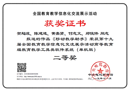 近日,中央电化教育馆公布了第十九届全国教育教学信息化交流展示活动获奖名单,信息科学与技术学院教师贺超波报送的作品《移动教学助手》获得高等教育组二等奖。