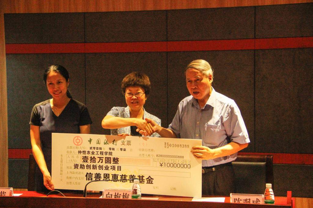 最后,向梅梅作讲话。向梅梅介绍了香港信善基金历年来对我校的捐助情况及我校近年来创新创业成果,希望受助学子铭记信善助学金捐资助学的滴水之恩,弘扬仲恺精神,以积极乐观的态度去面对困难和逆境,勤学苦读,日后能以优异的成绩和卓越的业绩回馈社会,把爱心接力棒永远传递下去。同时希望广大同学以“创新创业基金”的设立为契机,积极参与创新创业活动,全面提升综合素质,为国家富强和社会进步作贡献打下坚实基础。