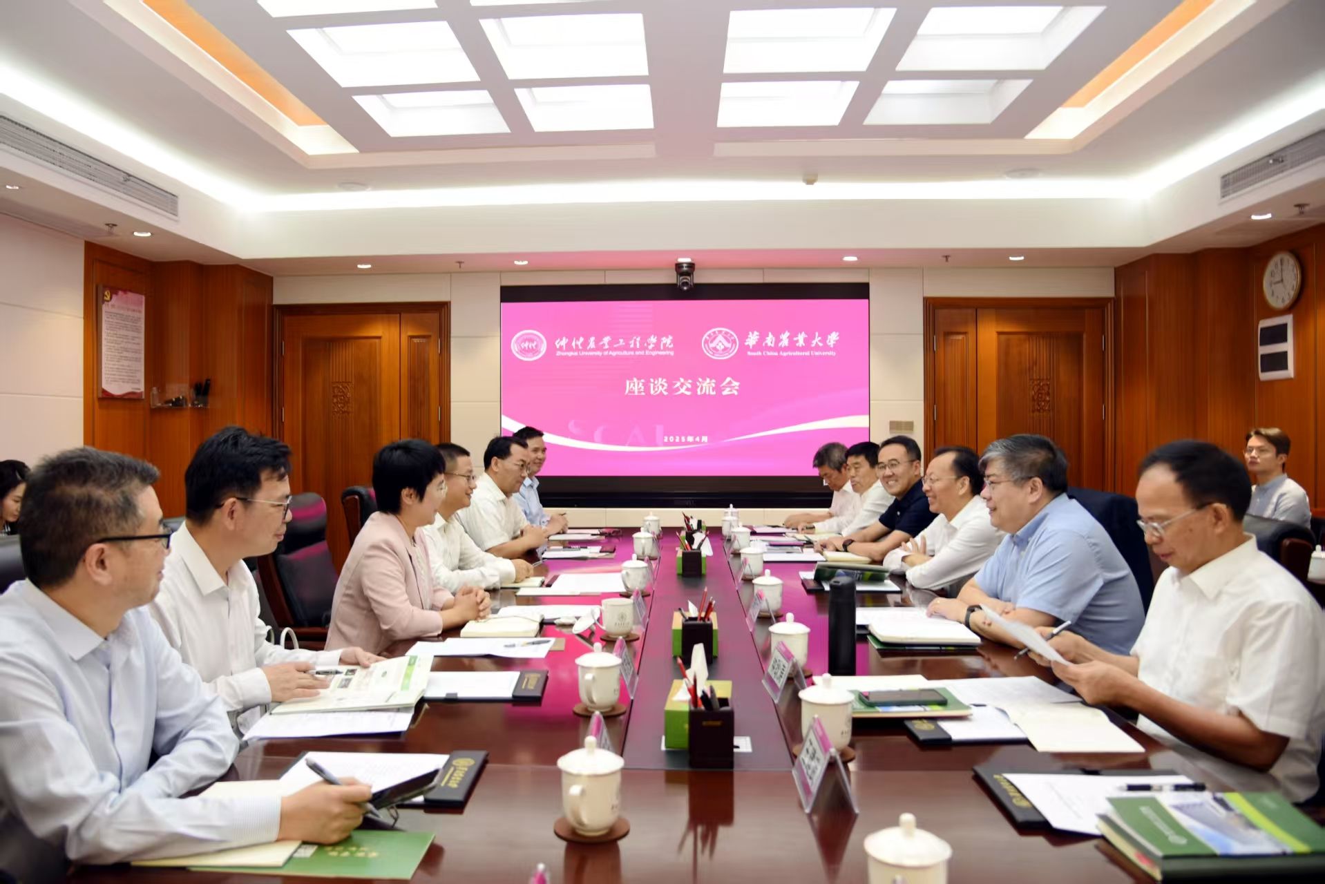 2025年4月16日,学校党委书记翟雪梅、校长廖明带领党政办公室、宣传统战部、研究生部、人力资源部、教务部负责同志到华南农业大学学习交流。华南农业大学党委书记李凤亮、校长薛卫红热情接待并进行了深入交流。华南农业大学政策研究室、党政办公室、党委宣传部、人力资源部、本科生院、研究生院、对外联络处负责同志参加座谈会。