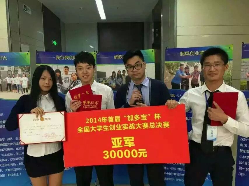 5月9日,由校导网、创业联盟主办,校企联盟协办的首届“加多宝”杯全国大学生创业实战大赛总决赛在中国科学院自动化研究所圆满结束。自2014年6月至2015年5月,历经11个月激烈的竞争和选拔,脱颖而出了十四支省赛冠军赴京同台对决,我校代表广东赛区出赛的“创二代”团队获亚军(唯一第二名)。