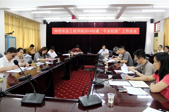 会议首先由学校保卫处石锐金处长通报了去年至今我校安全状况,总结引发安全事故的原因,梳理了校园还存在的安全隐患,同时传达了《广东省教育厅、广东省公安厅关于开展高等学校“平安校园”创建考评工作的通知》精神。其次,领导小组成员围绕《广东省高等学校平安校园创建考评指标体系》和《仲恺农业工程学院2014年创建“平安校园”活动实施方案(讨论稿)》进行了讨论和分工。