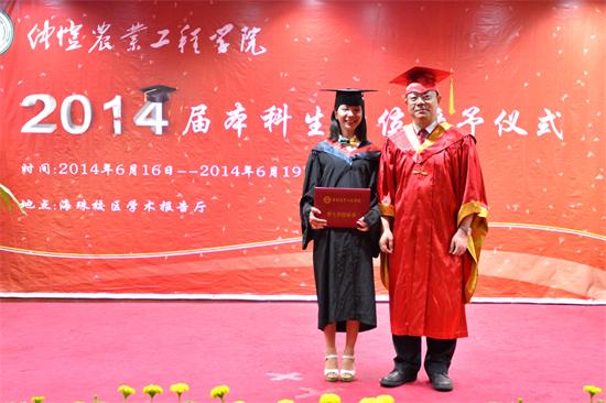 6月16日至19日,学校在学术报告厅里举行2014届本科生学位授予仪式。学校校长、学位委员会主席骆少明教授为全体毕业生授予学位。