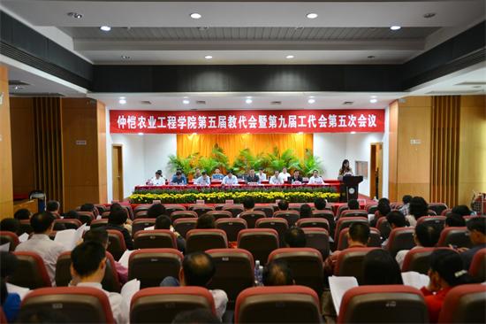会议通过了教代会、工会工作报告,财务工作报告,工会经审报告,《仲恺农业工程学院教代会提案工作实施办法》《仲恺农业工程学院福利费使用管理办法》和本次会议的《决议》。《决议》指出,骆校长的工作报告对学校的发展进程把握准确,对未来的工作思路立意高远,全面带动了学校发展的新格局,令人鼓舞,催人奋进,是学校今年工作的重要部署,对进一步调动和发挥广大教职工的积极性和创造性,推动学校的改革发展将发挥引导作用。《决议》中说,会议充分肯定,本届“双代会”第四次会议闭会期间,工会在校党委和行政的领导与支持下,团结动员广大教职工,认真履行职能,积极发挥民主参与和桥梁纽带作用,承担教代会工作机构职责并完成了相关任务,在各项工作中取得了新的发展。《决议》指出,要实现我校科学发展的总体目标,还需要全体教职员工加倍努力,进一步推动学校的各项改革与建设。《决议》号召全体教职工在校党委领导下,进一步巩固党的群众路线教育实践活动的成果,以全新的面貌、昂扬的斗志、扎实的作风投入到学校转型升级、做大做强的发展进程中去。