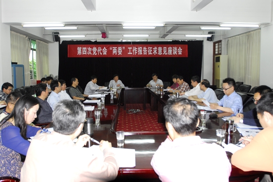 高书记通报了第四次党代会党委、纪委工作报告起草工作情况,强调召开座谈会的目的就是为了集中智慧和统一思想,要实事求是对上届党委的工作进行总结,对“两委”报告《讨论稿》第二稿中的“深化改革,协同创新,转型升级,做大做强”十六字战略方针贯彻始终发表自己的意见,要明确学校今后的指导思想、奋斗目标,进一步明确学校的办学定位、办学理念、办学特色,科学制定学校发展的具体指标,提供切实的措施保障,加大密切联系群众,提升民生方面的内容,学校党建和思想政治工作要按照十八大要求去实践,按照学校实际去工作。他要求各部门负责人结合学校实际,对所在部门的未来五年的定位阐述自己的看法,为学校的发展贡献自己的力量。