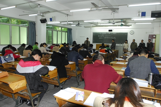 1月3日下午,中层副职干部竞争上岗的笔试在教学楼209和309室进行。91名参与竞争上岗的同志参加了笔试,他们思考认真、作答仔细。高志青书记和何斌副校长分别到场视察、监督和指导。
