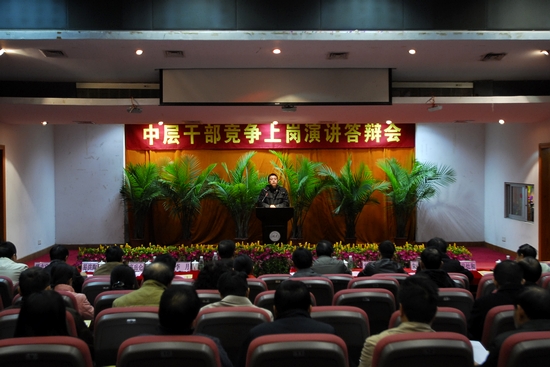参加竞争上岗答辩的44位同志逐个上台演讲答辩,他们从自身能力、竞争优势、部门工作设想等方面进行了4分钟的演讲,并就答辩主持人提出的与所竞岗位相关的问题作了即兴回答。评委们根据他们的表现分别从演讲内容、答辩效果、总体印象以及语言表达、形象风度等五大方面进行打分。