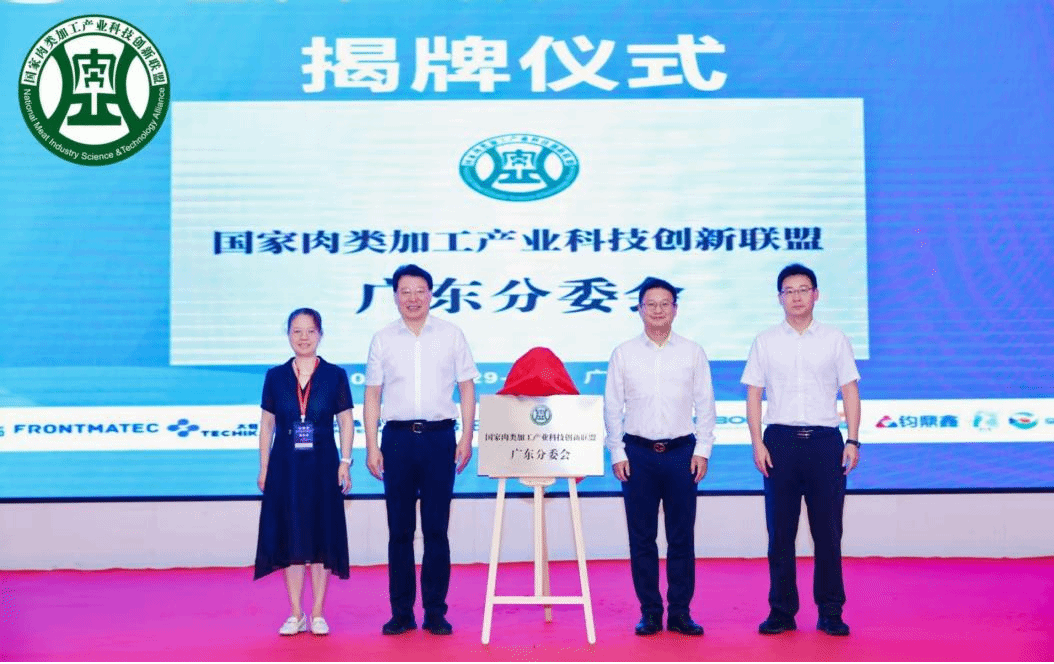 会上,廖明校长、刘现武副院长、刘涛副局长和王琴部长,共同为“国家肉类加工产业科技创新联盟广东分委会”揭牌,标志着一个立足广东、辐射全国的行业创新平台正式创建,平台将聚焦肉类加工产业关键技术,搭建科研成果与产业应用对接通道,持续推动各地区的产业资源共享和区域间产业的优势互补,助力国家肉类加工产业创新发展。
