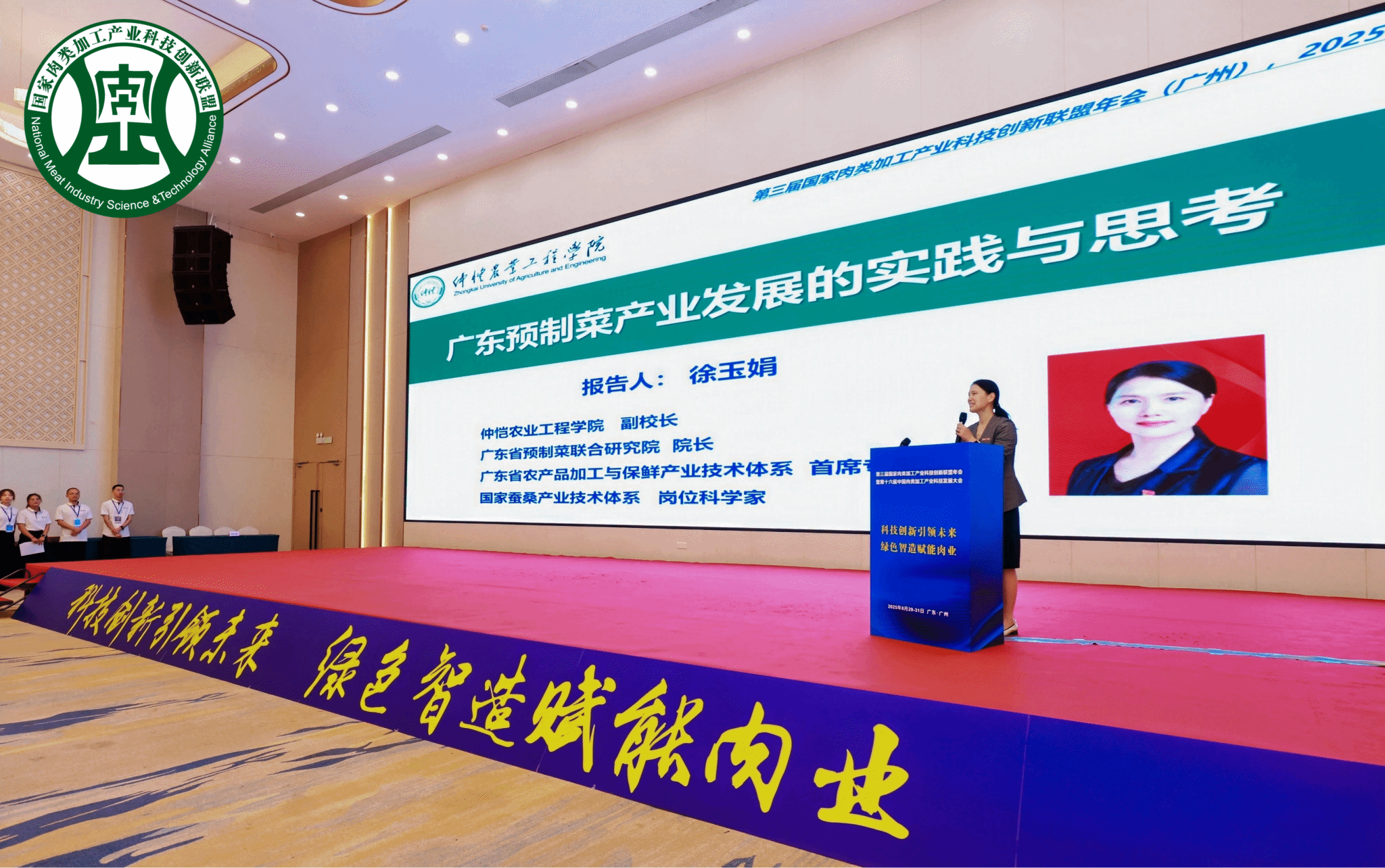 在主旨报告环节,徐玉娟副校长受邀作题为《广东预制菜产业发展的实践与思考》报告,其他专家作《鸡肉蛋白深加工与解酒护肝肽的开发和应用》《畜产品副产物高值化的关键技术》以及《简州大耳羊全链科创产业园》等报告。