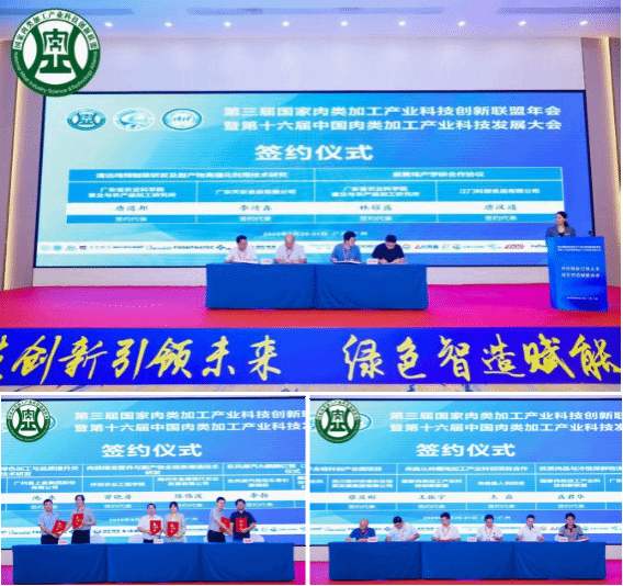 会上,我校和国家肉类加工产业科技创新联盟、广东省农业科学院蚕业与农产品加工研究所、广东省红智科技有限公司、四川简州空港农业投资发展集团有限公司、广州皇上皇集团股份有限公司、梅州市金绿现代农业发展有限公司、广东天农食品有限公司等多个单位围绕产业链协同、区域特色产业、冷链物流、副产物利用等多个领域促成了8个重点合作项目的签约,合作紧密围绕产业技术等核心环节,为加速科技成果转化,推动肉类加工产业技术落地、地域特色资源赋能及产业链协同升级奠定了坚实基础。