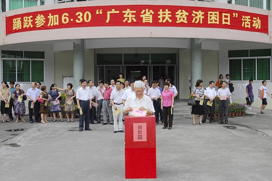 省委、省政府倡导的始于2010年的“广东6•30扶贫济困日”活动至今已开展三年,学党委贯彻落实省委、省政府和省委教育工委有关精神,认真组织今年的扶贫济困捐款献爱心活动。各基层党组织、团委积极响应学校党委号召,广泛发动师生员工积极参与。在党员干部的带动下,广大师生员工热情支持,踊跃参与,谱写了一曲新时代爱心华章。