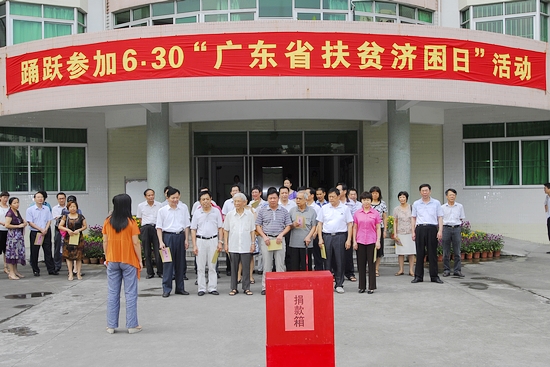 今年6月30日是广东省第三个“扶贫济困日”,根据学校党委统一部署,学校工会、团委、校扶贫工作小组三部门联合组织全校师生爱心捐款活动,在6月28日的捐款仪式上,共计收到善款80377.9元。