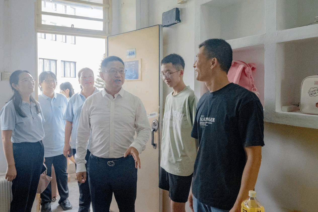 廖明深入海珠校区各迎新点及学生宿舍,实地指导迎新工作,重点关注困难新生报到情况与宿舍住宿保障。在迎新服务站,他详细询问迎新流程运转、志愿者服务安排及新生报到进度,对工作人员的辛勤付出表示肯定,并强调要优化服务细节,确保新生高效便捷完成报到。随后,廖明走进学生宿舍,仔细查看宿舍的住宿环境、设施配备及安全情况,关切地询问新生入住后的适应情况,叮嘱相关部门及时解决新生在住宿中遇到的水电、生活物资等问题,为新生营造安全舒适的居住环境。走访中,他特别关注困难新生群体,详细了解他们的报到需求与实际困难,为他们送上慰问与鼓励,并现场协调相关部门,确保助学金申请、生活帮扶等政策精准落实,帮助困难新生卸下顾虑、安心入学。