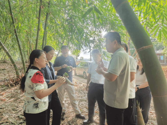 下午,调研组在英德市农业农村局副局长李奕业的陪同下,深入西牛镇开展实地考察。先后走访广东竹笙笙科技有限公司、西牛麻竹笋展示中心及广东英德市巨元孖宝麻竹笋有限公司,详细了解麻竹笋种植、加工、销售全链条运营情况,对企业推进精深加工、提升产品附加值的做法表示赞赏。