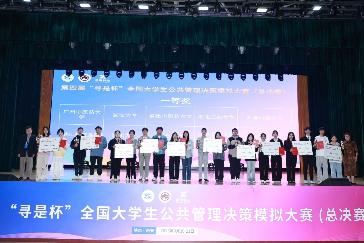 2025年9月21日,第四届“寻是杯”全国大学生公共管理决策模拟大赛总决赛在西安交通大学(兴庆校区)圆满落幕。我校人文与社会科学学院2023级行政管理专业学子组成的“城市攻坚小分队”(队员:伍杰蓉、金烊洋、林佳欣),在蚁佳纯、许志国两位老师的指导下,从全国7大赛区选拔出的100所高校代表队中脱颖而出,最终夺得全国一等奖,再度彰显人文学院在公共管理学科实践教学领域的过硬实力。