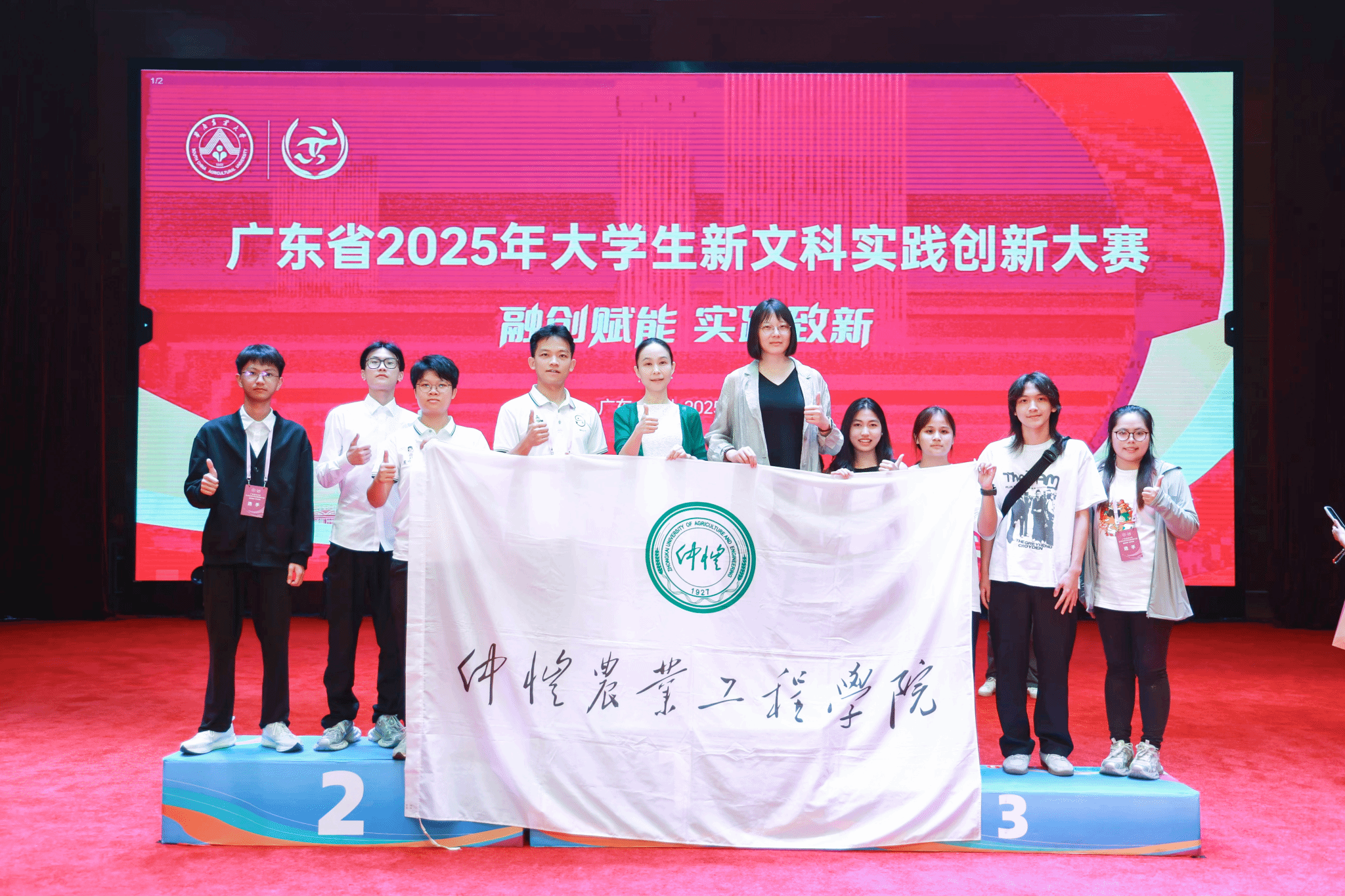 10月12日,由广东省教育厅指导,广东省高等教育学会、华南农业大学主办的广东省2025年大学生新文科实践创新大赛圆满落幕。我校遴选了4支参赛队伍参加本次大赛,表现优异,最终荣获2项银奖、2项铜奖。