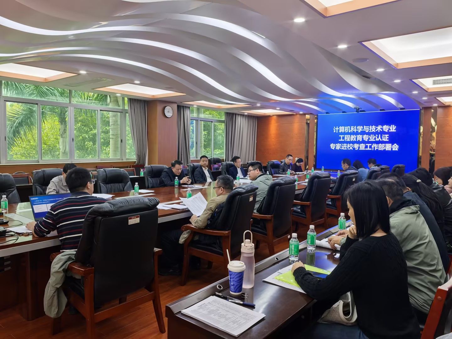 为全力保障计算机科学与技术专业顺利通过工程教育专业认证,11月18日,学校于海珠校区409会议室召开专业认证迎查工作部署会。校党委副书记、校长廖明出席会议并讲话,党委常委、副校长田允波主持会议,人工智能学院领导班子、教学质量监测与评估中心及相关职能部门负责人、相关学院教学副院长参会。