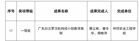 近日,根据《关于公布2025年度广东省学位与研究生教育学会优秀教学成果奖的通知》,经专家评审与社会公示,2025年广东省学位与研究生教育学会优秀教学成果奖获奖名单正式揭晓。本次共评选出优秀教学成果奖99项,其中,由我校蔡立彬、曾令华、周映萍三位老师申报的“广东白云罗汉松科技小院教学案例”荣获一等奖。