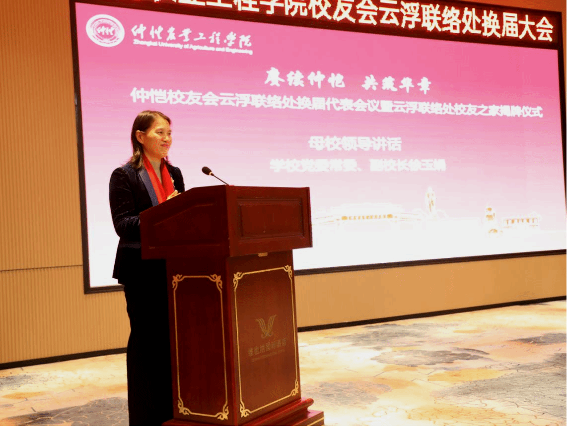 徐玉娟代表学校对校友会云浮联络处换届会议顺利召开表示热烈祝贺,对云浮联络处工作人员的精心筹备表示衷心感谢。她表示,近年来学校强化学科建设,汇聚优质师资,办学水平稳步提升,正朝着“更名大学”的目标奋勇攻坚,向着建校百年的重要里程碑稳步迈进。她对新一届理事会及广大校友提出三点希望:一是以服务校友为根基,开展贴合需求的交流活动,提供精准务实的信息资源。二是以云浮为根、以实干为翼,将在母校习得的专业知识、涵养的务实作风转化实实在在的业绩,为云浮高质量发展添砖加瓦。三是心系母校、情牵校地,主动当好校地合作的“连心桥”,推动母校的科研优势、人才优势与云浮的产业需求、发展机遇精准对接,让资源双向流动、价值双向赋能。