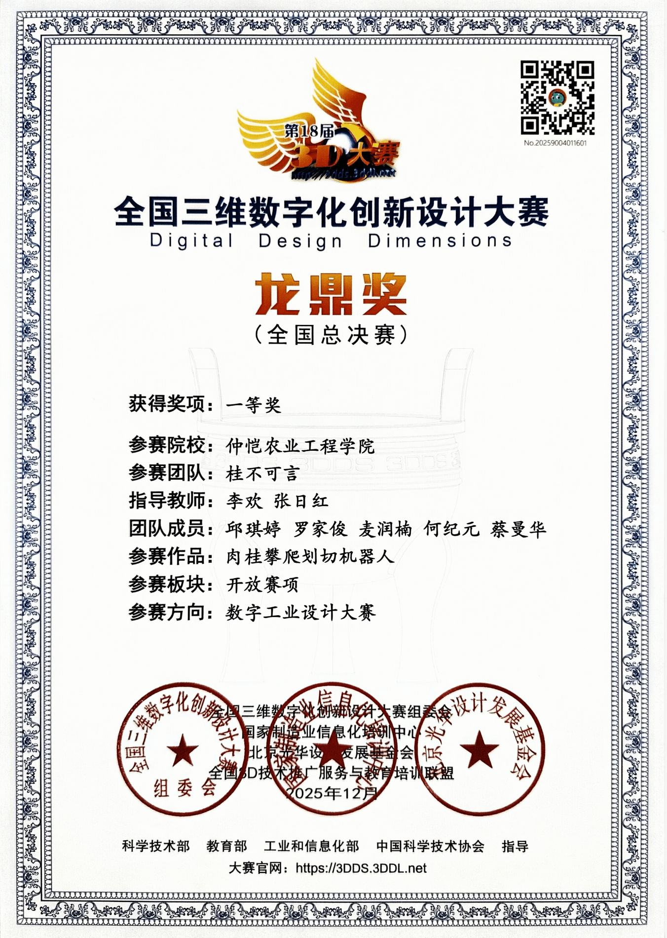 近年来,机电工程学院高度重视学生创新实践能力培养,积极搭建学科竞赛平台,促进理论教学与工程实践深度融合。学院以提升学生创新创业能力为核心,依托科创竞赛全面锤炼学生的创新思维、实践能力与团队协作精神。通过重点建设创新工作坊——启辰创新实验室,学院系统实施工程案例教学、企业导师指导、递进式竞赛训练与专创融合平台构建等举措,有效引导学生形成“发现问题-设计方案-实践验证”的完整创新闭环,显著增强了学生在智能技术与装备等领域的实战能力。此次在全国三维数字化创新设计大赛中取得的优异成绩,正是学院持续推进教育教学改革、着力培养创新应用型人才的生动体现。