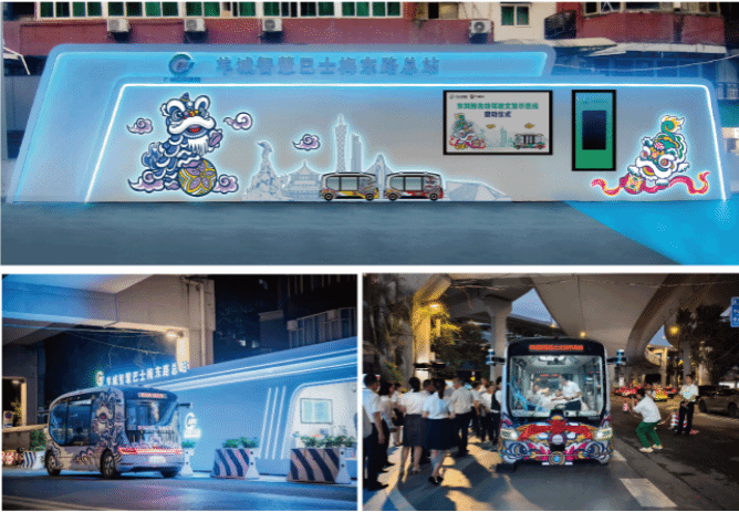以十五运会和残特奥会交通保障为核心的自动驾驶梅东路车站与自动驾驶小巴醒狮体育非遗主题装饰设计(源于研究团队)