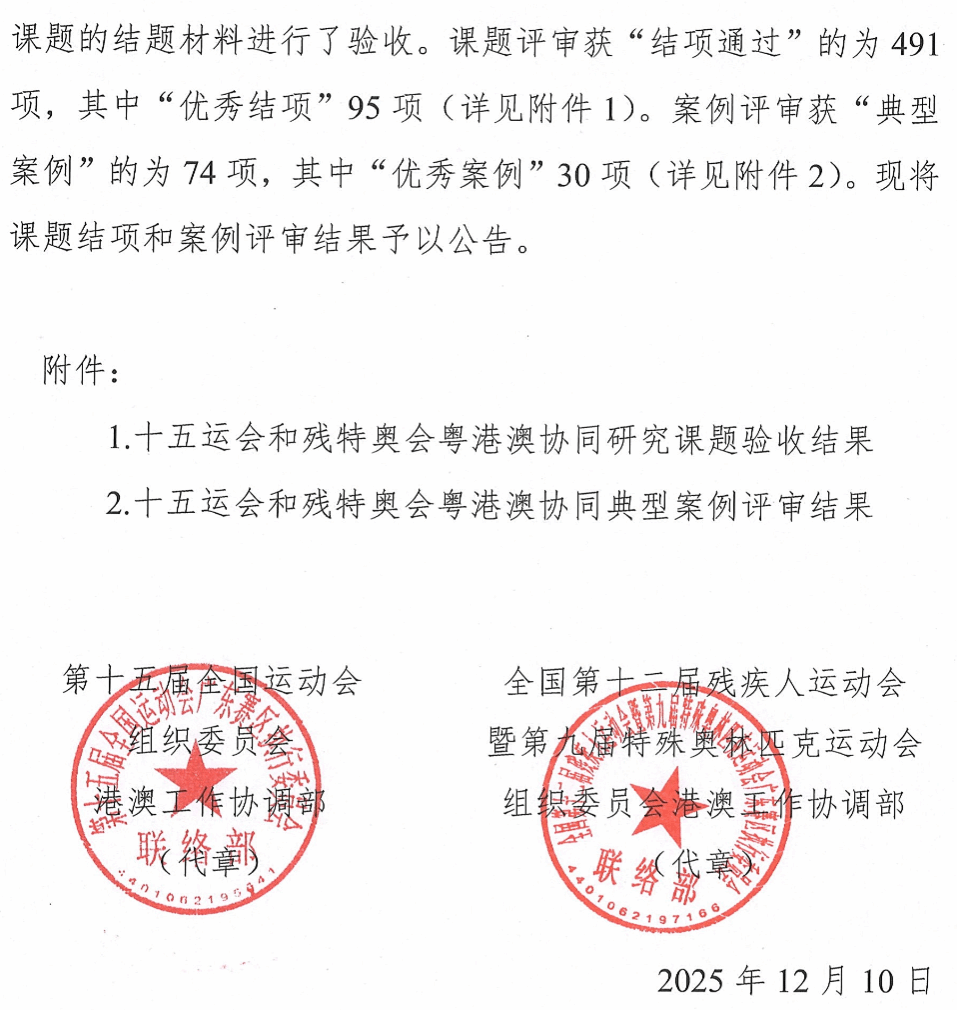 此次在十五运会和残特奥会粤港澳协同研究成果的突出表现,证明了学校科研团队在跨学科研究方面、体育非遗文化创新研究领域的显著优势。学校将以此为契机,持续深化跨学科融合育人改革,聚焦复合型人才培养,为粤港澳大湾区建设贡献更多仲恺智慧。