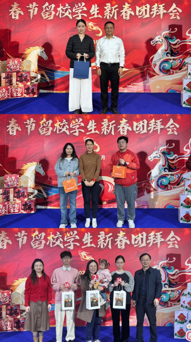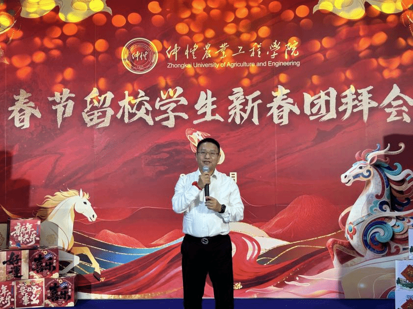 丙午马年新春将至,2月12日下午,在马年新春佳节来临之际,学校在海珠校区北区舞厅举办2026年寒假留校学生新春团拜会,师生欢聚一堂,一同迎接祥马新年的到来。学校党委副书记、校长廖明,学校党委常委、副校长徐玉娟,学生工作党委书记、学生工作部部长李伟东,团委书记杨珊珊以及学生工作部、团委、创新创业教育学院等相关负责人和老师,春节留校学生齐聚现场,共赴这场暖心的新春之约。