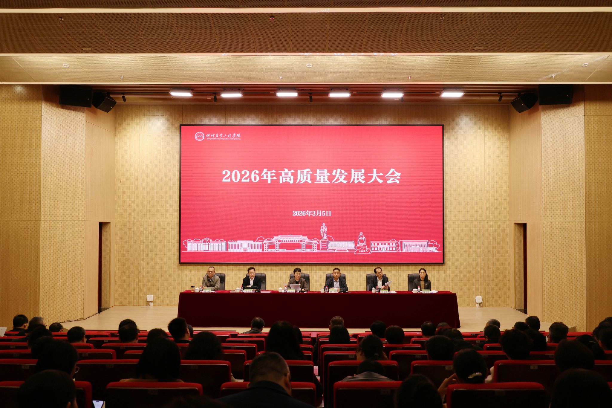 为深入学习贯彻党的二十大及二十届历次全会精神,全面落实习近平总书记关于教育、科技、人才一体发展的重要论述精神,紧扣省委“1310”具体部署和2026年全省高质量发展大会要求,立足“十五五”开局之年、锚定教育强国、农业强国、人才强国建设目标,紧扣乡村全面振兴、粤港澳大湾区建设、“百千万工程”等重大战略,动员全体中层干部牢固树立和践行正确政绩观,3月5日上午,学校在白云校区德新楼报告厅召开高质量发展大会,就推动2026年高质量发展的主要任务进行动员部署。党委书记翟雪梅,党委副书记、校长廖明出席大会并讲话。党委常委、副校长田允波、林俊睦、张文峰、徐玉娟,全体中层干部参加会议。会议由田允波主持。