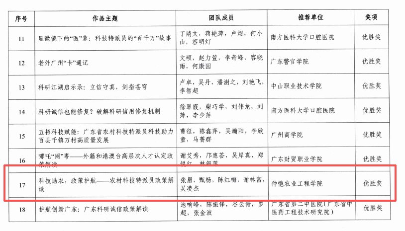 近日,广东省科学技术厅、广东省教育厅联合发布了《关于公布2025年省科技政策宣贯直通车大赛获奖名单的通知》(粤科函政字〔2026〕292号),我校在大赛中表现优异,共有7名教师报名参赛,最终斩获二等奖1项、优胜奖1项,并获得优秀组织奖。