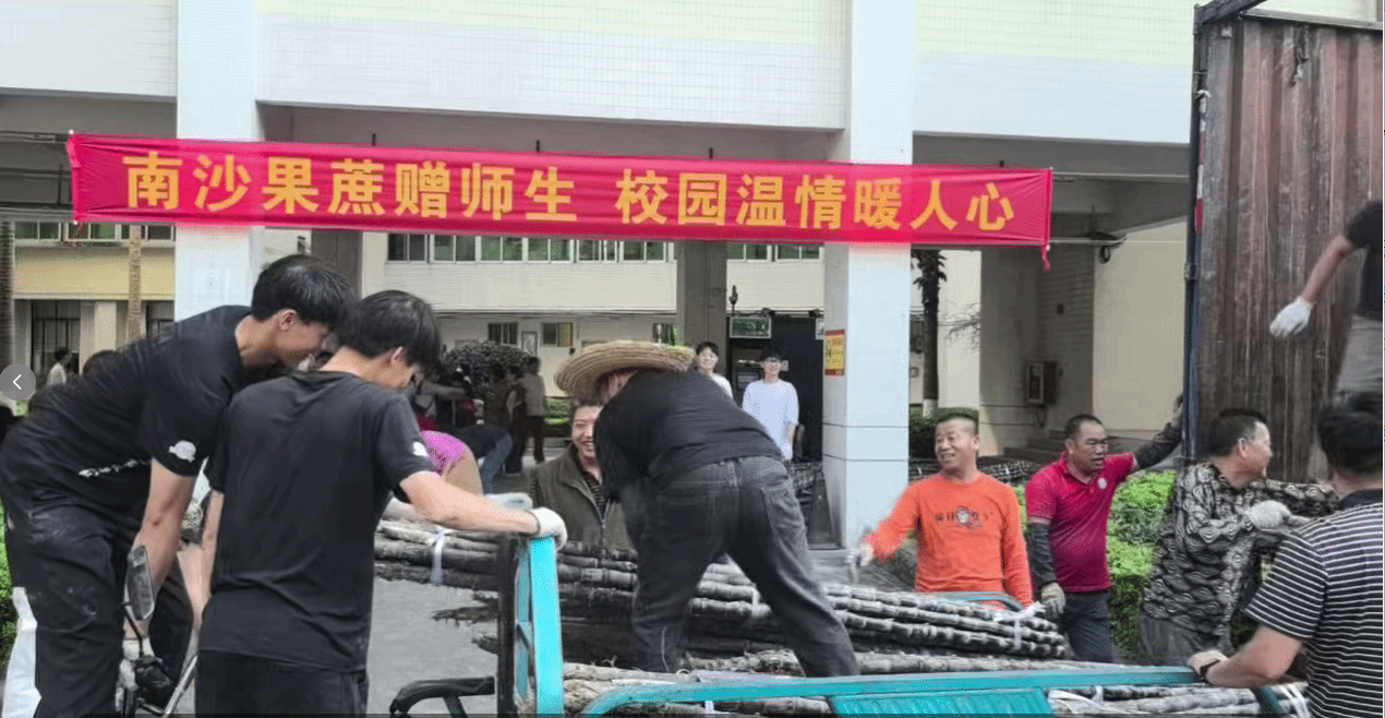 “南沙果蔗非常出名,吃起来也很甜。这次南沙直接把果蔗免费送到学校的举措非常有意义,可以让更多学生尝鲜。”数据专业大四的孙同学分享道;“非常感谢南沙,果蔗从田头直达学校,让我们都能品尝这份清甜。”计算机专业大二的吴同学也点头称赞道。