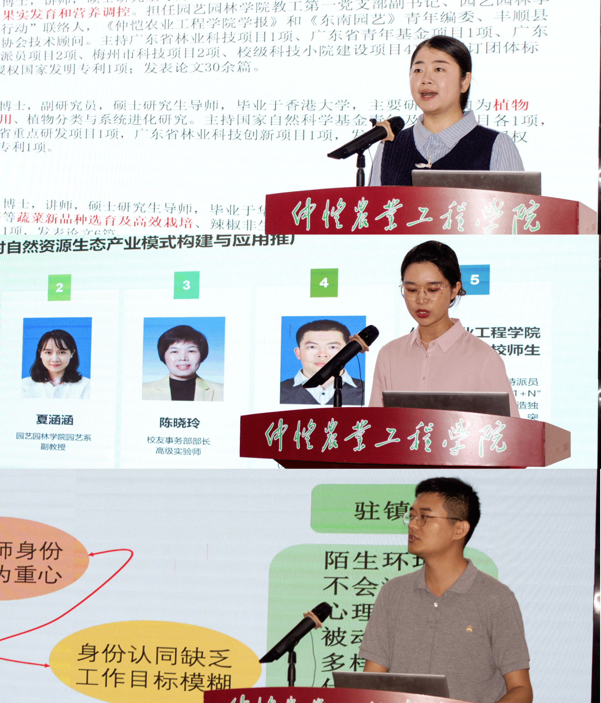 在优秀特派员团队代表经验分享环节,产业帮扶代表宋雯佩、生态构建代表周佳梦、加工赋能代表马路凯三位老师依次登台,结合各自驻点帮扶实践,分享了科技助农的宝贵经验。宋雯佩团队驻点梅州丰顺留隍镇,聚焦橄榄产业技术攻关,选育5个优质新品种、建立高接换种示范基地,以“良种+良法”推动橄榄产业提质增效;周佳梦团队扎根揭阳揭西良田乡,将生态价值核算、景观规划设计与乡村振兴深度融合,实现教学科研与社会服务双向赋能,打造“以研促兴、以兴促赛”的融合范本;马路凯团队深耕揭阳揭东桂岭镇,以岭南特色农产品加工为核心,破解专业与产业需求匹配难题,通过组团式帮扶培育本土合作社,实现团队与个人成长、产业发展的同频共振。三位代表的分享,从产业升级、生态构建、加工赋能三个维度,展现了仲恺科技特派员团队精准对接地方需求、破解乡村发展难题的实干与智慧,为全体特派员提供了可复制、可推广的实践经验。