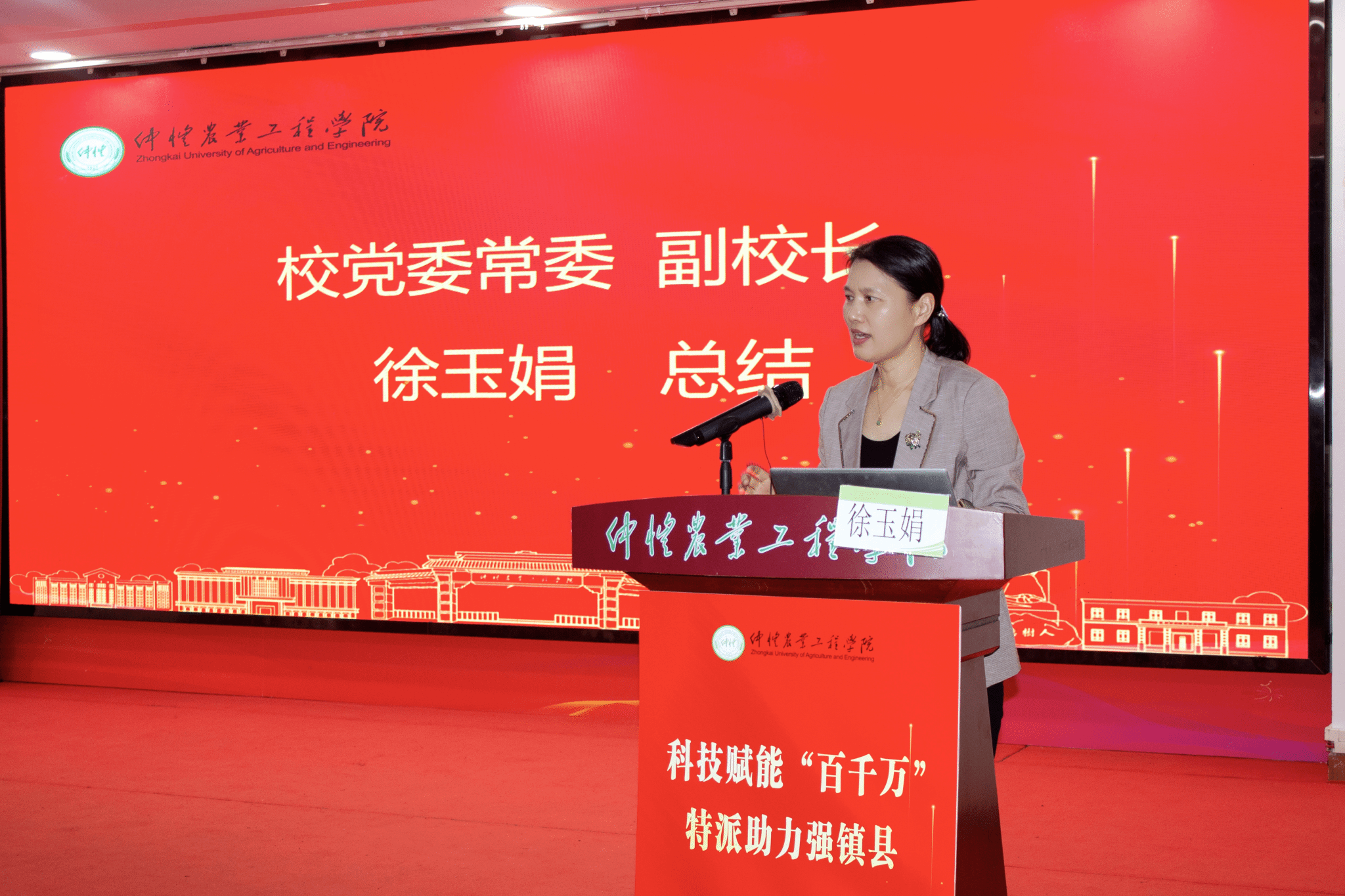 会上,徐玉娟作总结讲话。她指出,近两年学校特派员团队深扎根、破难题、树品牌、见实效,足迹遍布全省15个地市209个乡镇,累计服务天数超1.9万天,以实际行动践行了“把论文写在田野大地上、把成果留在农民家”的初心使命。针对下一步工作,她向全体特派员提出三点希望:从“点上帮扶”走向“链上赋能”,聚焦县域主导产业提供全产业链解决方案;从“单兵作战”走向“协同攻坚”,打破学院壁垒组建跨学科团队,打出科技助农“组合拳”;从“技术输出”走向“人才孵化”,培养一批“带不走”的乡土人才,让学生在实践中厚植爱农情怀、练就兴农本领。
