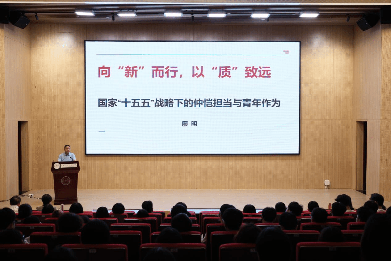 为深入学习贯彻国家“十五五”规划战略部署,引领全校师生明晰时代方位、扛起使命担当,4月10日上午,校长廖明以“向‘新’而行,以‘质’致远,国家‘十五五’战略下的仲恺担当与青年作为”为主题,在白云校区德新楼学术报告厅为动物科技学院、资源与环境学院和城乡建设学院的同学们讲授“思政第一课”。课程内容立足时代发展大局,结合学校办学定位与特色,全面解读“十五五”规划核心要义,系统阐释学校践行规划的实践路径,深情寄语广大仲恺学子在新时代新征程中奋勇争先、建功立业,整场思政课思想深刻、内涵丰富、催人奋进。