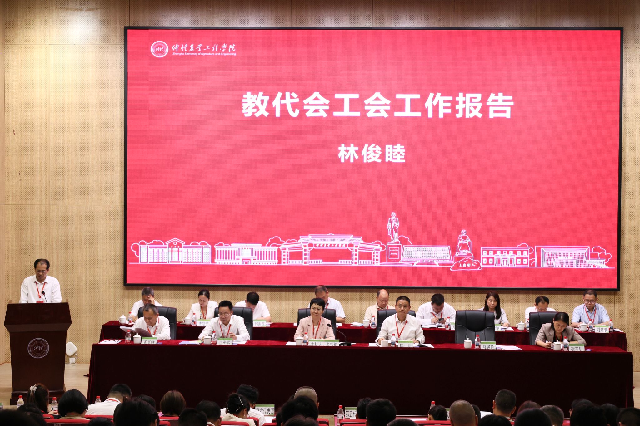 林俊睦作五年多来教代会工会工作报告。校工会委员会在任期内,坚持以习近平新时代中国特色社会主义思想为指导,紧紧围绕学校中心工作和发展大局,充分发挥党联系职工群众的桥梁和纽带作用,为学校顺利完成“十四五”规划目标任务、稳步推进新时代特色鲜明高水平应用型大学建设,贡献了力量、彰显了担当、展现了作为。今后五年,学校工会工作将紧紧围绕学校立德树人根本任务和高质量发展大局,认真履行工会基本职责:一是坚持正确政治方向,在思想引领上答好“工会答卷”;二是坚持畅通民主管理渠道,在维护权益中展现“工会作为”;三是坚持融入中心工作,在服务大局中彰显“工会力量”;四是坚持强化服务保障,在关爱职工上传递“工会温度”;五是坚持完善自身建设,在履职尽责中体现“工会担当”。组织动员全校教职工为实现学校“十五五”发展目标与使命愿景团结奋斗,为建设“农工并重,科技领先”的新时代特色鲜明高水平应用型大学贡献力量。