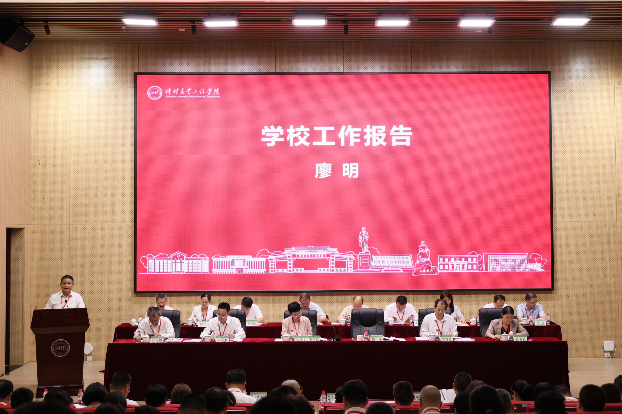 廖明代表学校向大会作工作报告,全面回顾2025年工作亮点和近五年工作成效。2025年,学校各项事业取得显著成绩。一是实施“攻坚行动”,核心发展任务取得突破;二是坚持“三全育人”,“大思政”育人格局不断完善;三是持续深化改革,人才培养质量全面提升;四是坚持引育并举,师资队伍结构持续优化;五是坚持精准发力,科技创新能级显著提升;六是彰显使命担当,聚力赋能“百千万工程”;七是扩大开放办学,对外交流合作不断拓展;八是抓好民生保障,办学条件不断完善;九是坚持依法治校,现代大学治理能力明显增强。过去五年,学校内涵式发展持续深化,学科建设实现新跃升,人才培养取得新成效,师资队伍焕发新活力,科技创新迈出新步伐,社会服务展现新作为,办学条件获得新改善,综合改革激发新活力。2026年工作总体思路和重点:一是聚焦重大攻坚任务,实现发展历史性跨越;二是深化教育教学改革,提升人才培养质量;三是强化有组织科研,奋力实现科技创新跃升;四是强化人才战略引领,建设高水平师资队伍;五是拓展优化办学资源,夯实事业发展基础;六是提升服务保障效能,建设平安健康绿色校园;七是提升治理现代化水平,激发内生发展动力;八是繁荣校园文化,营造优良育人环境;九是加强党的全面领导,凝聚高质量发展合力。