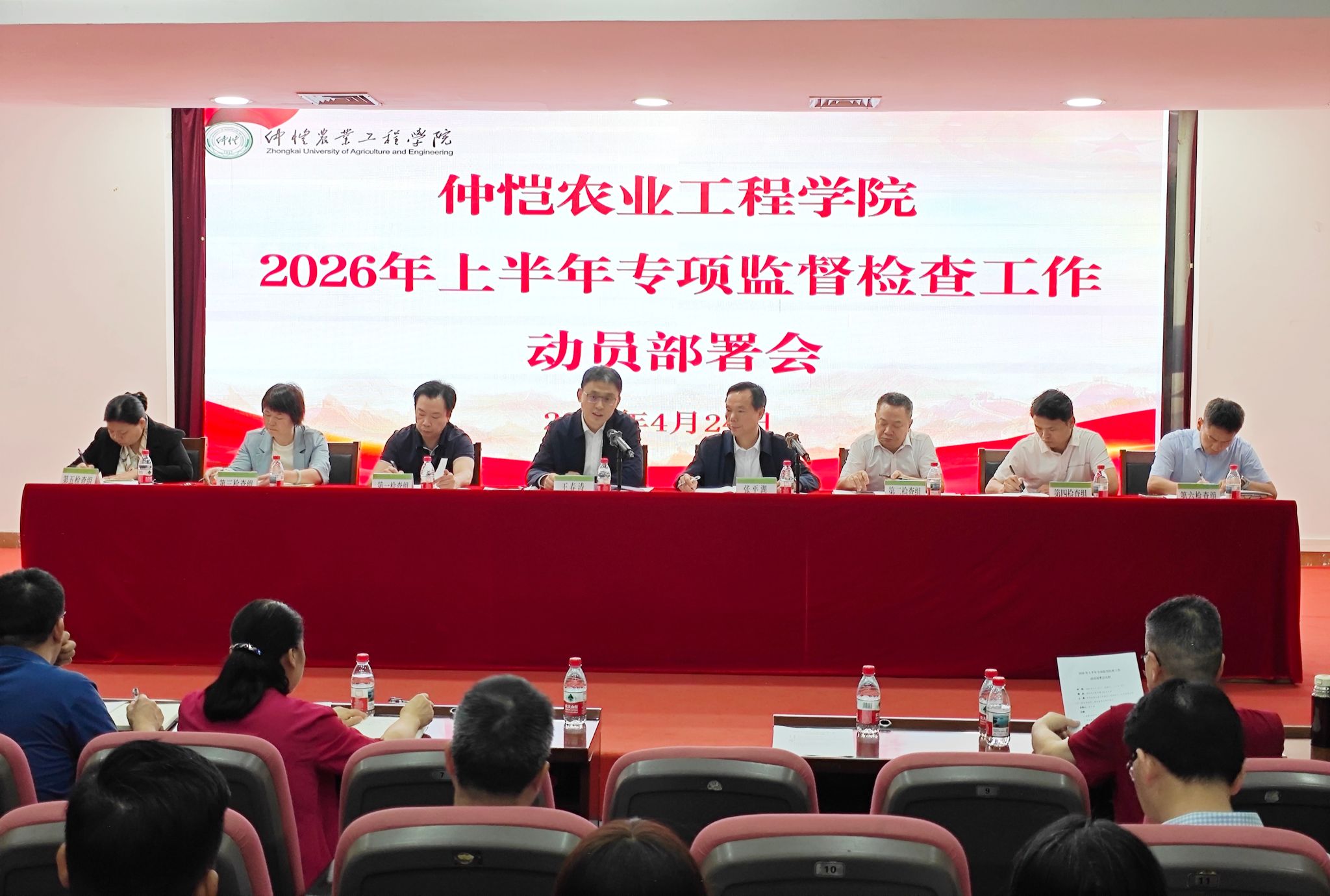 4月24日上午,学校在海珠校区学术报告厅召开2026年上半年专项监督检查工作动员部署会。学校党委常委、纪委书记、专项监督检查工作领导小组副组长王春涛出席会议并讲话。6个专项检查小组全体成员,14个被检查单位主要负责人,纪检监察室专职干部参加会议。