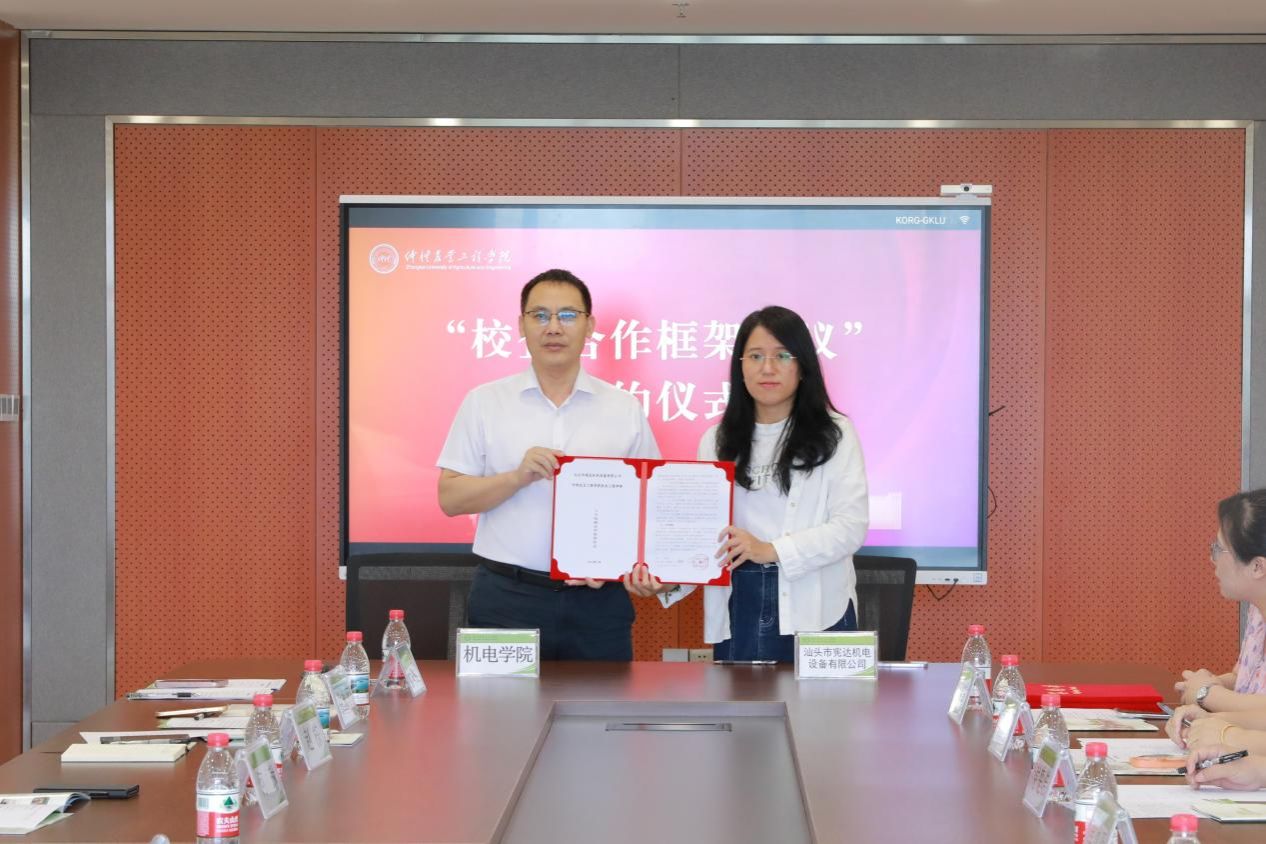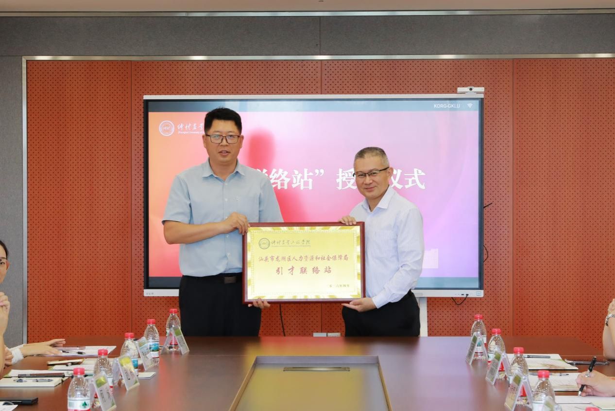 座谈会上,李伟东详细介绍了学校的办学底蕴、学科特色以及2026届毕业生整体规模、专业分布、就业进展等情况;陈小群详细介绍了当地就业创业扶持政策、人才发展环境,为学子就业创业注入信心;并代表龙湖区人社局为学校授予“引才联络站”牌匾,标志着双方正式建立长效双向沟通机制,未来将在人才引育、就业服务落地、政策精准推送等方面深化合作,实现企业岗位需求与毕业生资源的精准对接。此外,龙湖区3家企业代表广东正超电气有限公司、汕头市宪达机电设备有限公司、广东西之月供应链有限公司,分别与我校自动化学院、机电工程学院、管理学院签订了人才战略合作协议,进一步深化校企定向引才、协同育人、共建共育的合作模式,为学子搭建更广阔的成长平台。