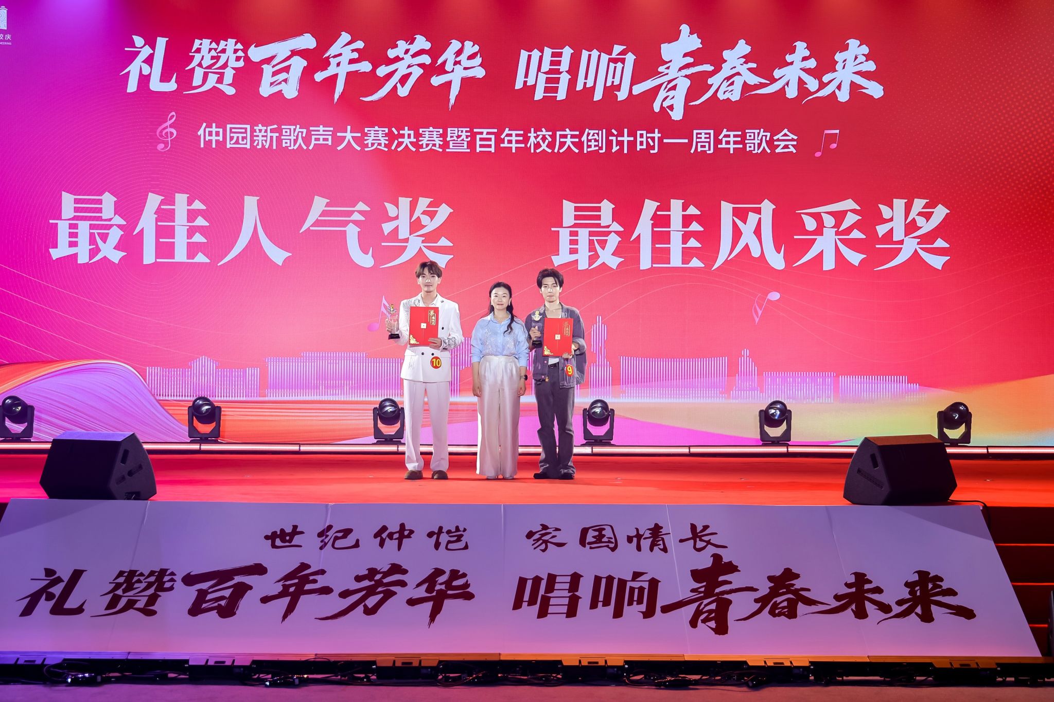经过三位专业评委的严格评审与现场观众投票,最终 决出邱泳豪、薛泽振、许诺3位同学分别赢得冠、亚、季军,其余选手获2026年度仲园十佳歌手称号。此外,邱泳豪获全场最佳人气奖,许诺获全场最佳风采奖。与会领导分别为冠亚季军颁奖,现场掌声雷动,晚会在感动与欢呼中圆满落下帷幕。