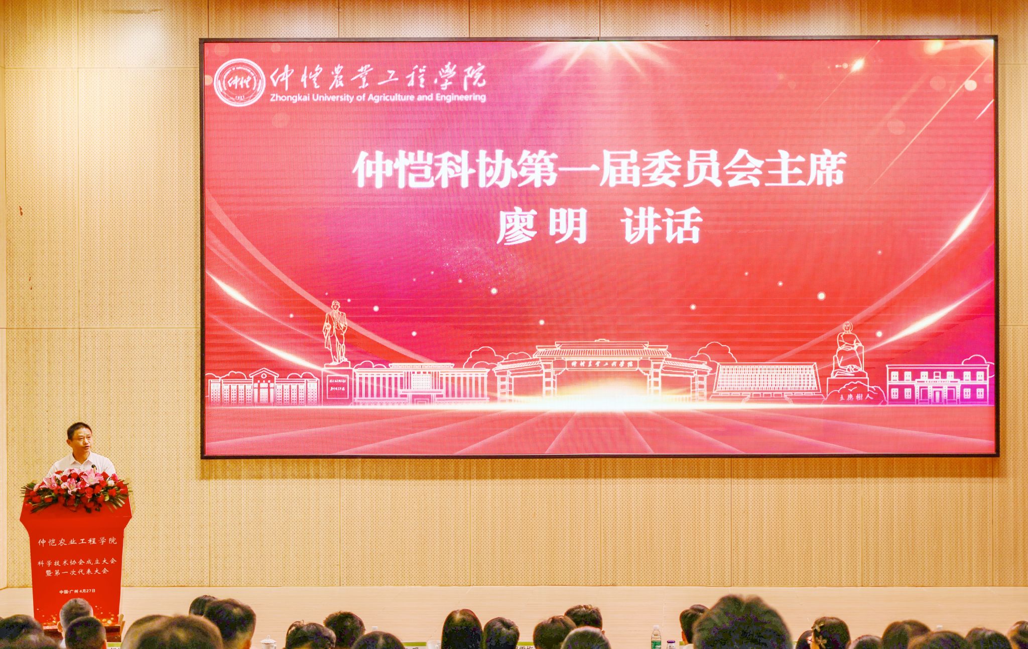 广东省科协组织联络部三级调研员周长江宣读了广东省科协关于同意成立仲恺农业工程学院科学技术协会的批复文件。科学技术部部长王琴作筹备工作报告。大会审议通过了仲恺科协章程及选举办法,选举产生第一届委员会委员48名。随后召开的第一届委员会第一次会议选举廖明为主席,徐玉娟、舒绪刚、戚兴华为副主席。