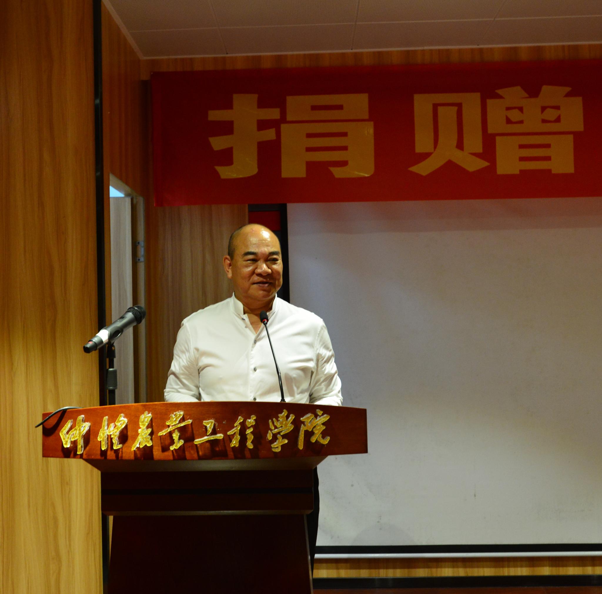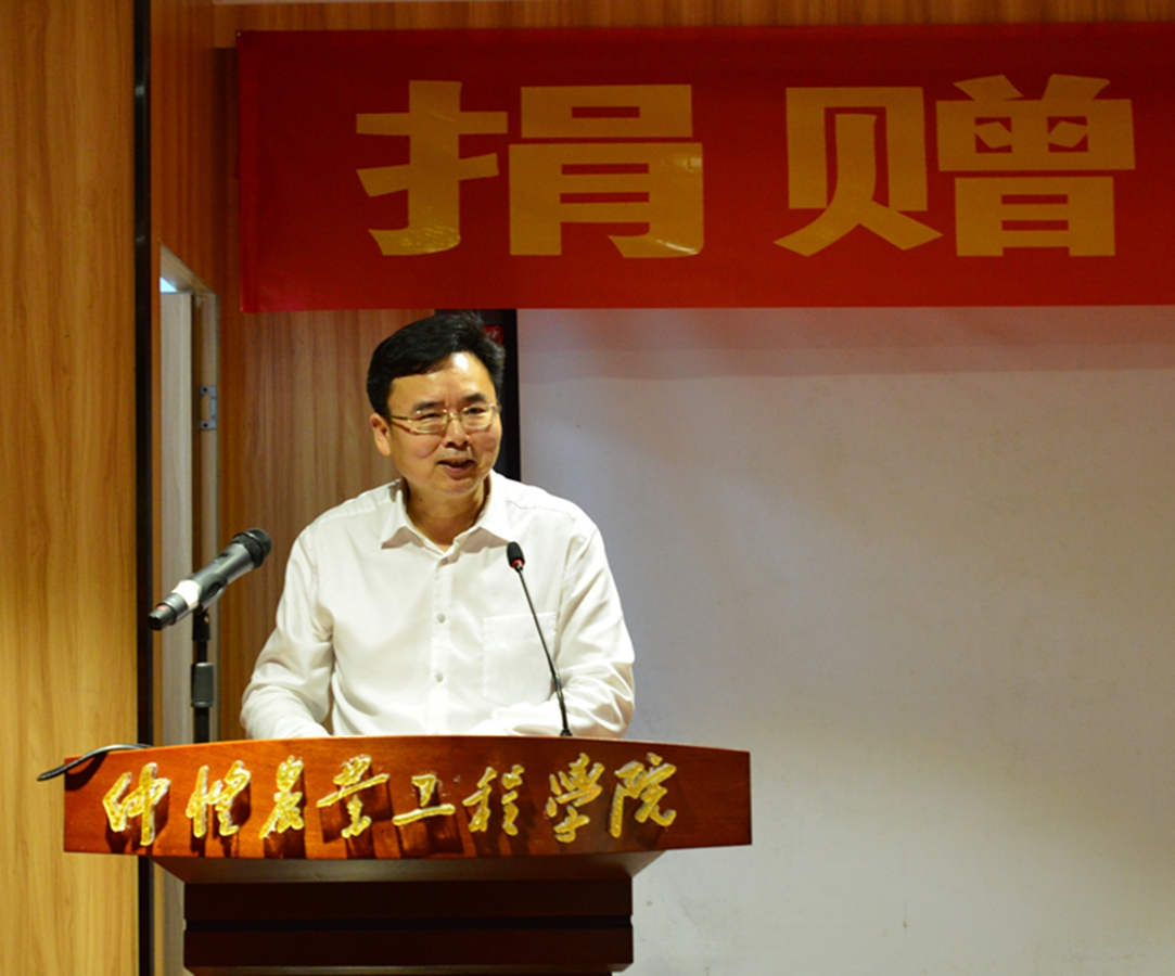 党委书记宋垚臻发表了致辞。他代表学校全体师生员工向一直关心和支持我校教育事业的房胜棠先生和社会各界人士表示了衷心感谢和崇高的敬意。他表示,“房胜棠先生不仅一直致力于中华武术事业的推动和发展,而且积极投身慈善教育事业。房先生乐善好施、扶贫济困、捐资助学的爱心善举,充分体现了他的侠者大爱和仗义之心,为我们传递着满满的正能量。作为我校的客座教授,房先生不辞辛苦,多次来校向广大师生传授蔡李佛拳,使蔡李佛拳这一非物质文化遗产在学校得以发扬光大。”他希望全校师生能够感恩于房胜棠先生的爱心善举,铭记他的捐资助学的滴水之恩,认真学习,努力工作,以优异的成绩回馈社会。