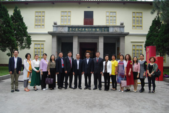 中午,在学校党委书记宋垚臻、校长骆少明等领导陪同下,民革中央副主席李惠东,民革广东省委主委、省人大常委会副主任周天鸿,民革广东省委副主委、广东省农业厅副厅长程萍等一行,与民革仲恺支部成员参观了廖仲恺何香凝纪念馆和在学校办事处旧址——乐干楼四合院中举办的“何香凝书画作品图片教学观摩展”,了解了学校艰辛创建发展的历史。