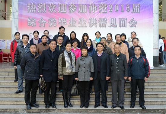 为切实做好我校毕业生就业工作,大力构建毕业生与用人单位的交流平台,12月17日,由校学生就业指导中心、海珠区人力资源与社会保障局主办,校大学生职业发展协会承办的2016届毕业生冬季综合类供需见面会在海珠校区成功举行。校党委副书记向梅梅、海珠区人力资源与社会保障局副调研员陈志娥、海珠区人才办主任彭刚、校学生就业指导中心主任柯锦泉及各二级学院书记、副书记莅临本次招聘会现场,详细地了解用人单位需求和毕业生的应聘情况并指导工作。