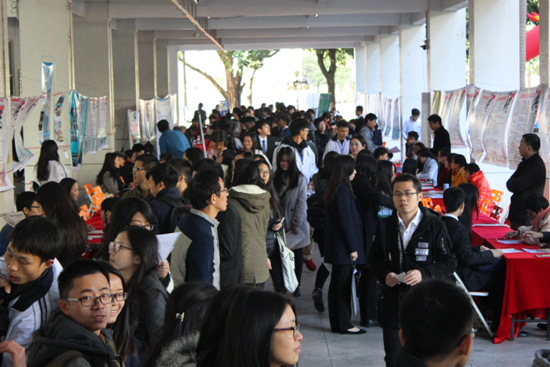 在招聘会现场,一共有104家企业来我校招贤纳士。其中,包括阿里巴巴股份有限公司、海信集团、埃森哲(中国)有限公司、中国南方航空股份有限公司、广东四季景山园林建设有限公司、华安证券股份有限公司等知名企业。当日会场气氛很好,我校毕业生根据自身的专业背景以及青睐的职位,纷纷前往对应的展位咨询并投递简历,积极与招聘者沟通交流,详细了解用人单位情况。
