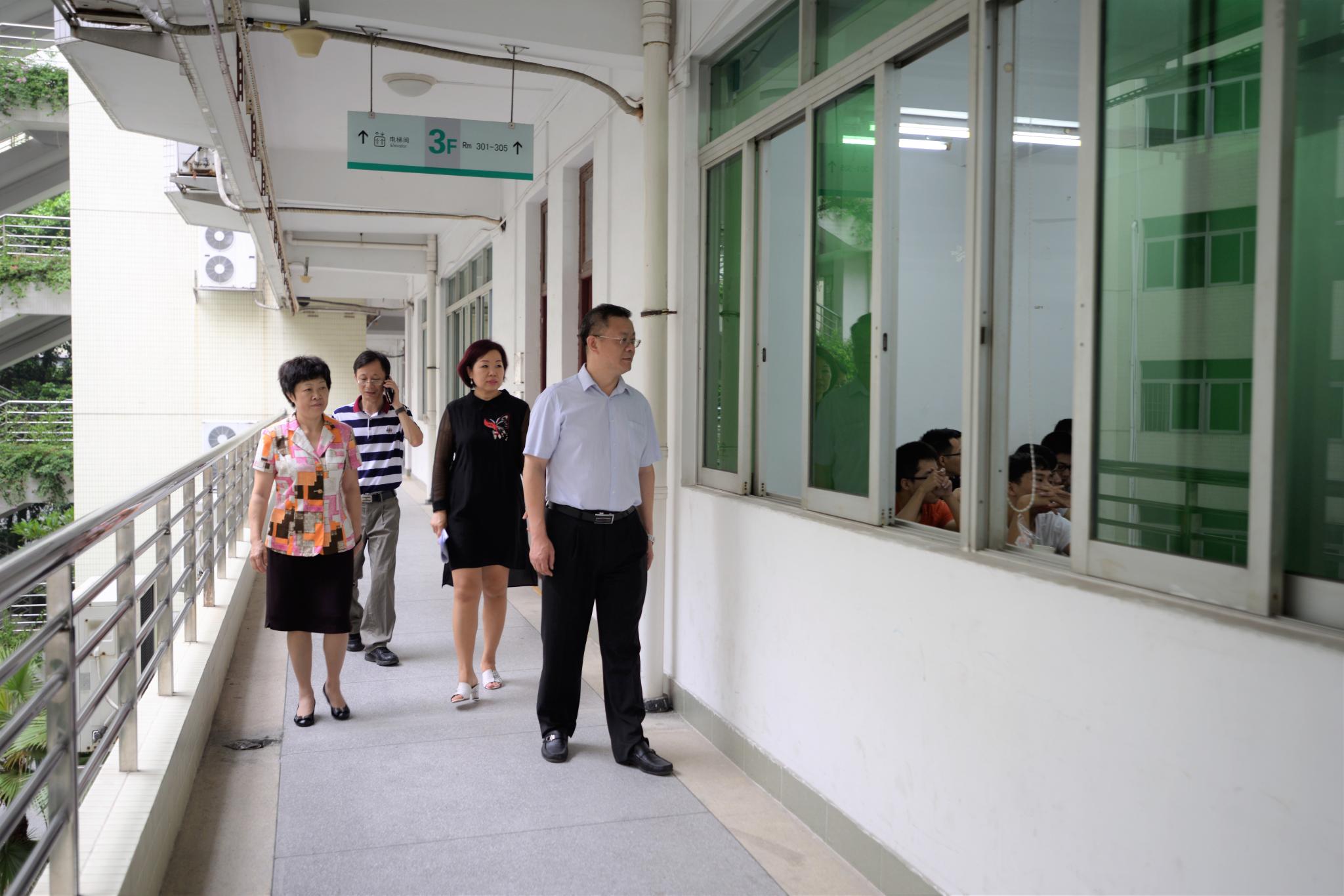 骆少明校长、向梅梅副书记等一行在巡查海珠校区的课室