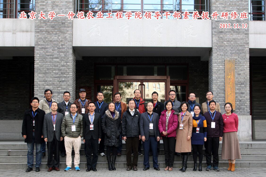 11月13日上午8点,北京大学—仲恺农业工程学院二级学院院长综合能力提升研修班在北京大学教育学院举行开班仪式。北京大学教育学院党委书记阎凤桥、教育培训部李慧,我校18个二级学院(部)院长(主任)及党政办、人事处(党委教师工作部、教师发展中心)主要负责人等20位学员,参加了开班仪式。
