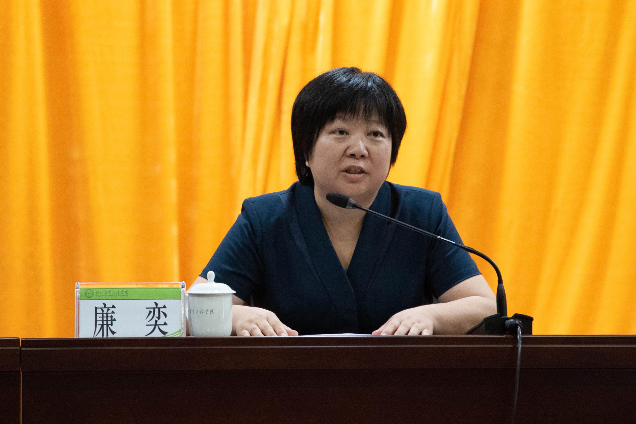 廉奕在讲话中简要介绍了程萍同志的基本情况,指出程萍同志政治觉悟高,政策理论水平高,工作经验丰富,统筹协调能力强,在省农业厅工作期间和担任省民革广东省委会主委实绩突出。省委认为,由程萍同志出任仲恺农业工程学院院长一职是合适的。这次学校主要领导干部的调整配备,是省委从仲恺农业工程学院事业发展需要和领导班子建设的全局出发,经过通盘考虑,慎重研究作出的决定,体现了省委对仲恺农业工程学院工作和学校领导班子建设的高度重视,希望全校党员干部和教职工把思想认识统一到省委的决定上来,坚决拥护省委的决定,积极支持程萍同志的工作;同时希望程萍同志与宋垚臻书记以及班子成员精诚团结,上下一心,推进学校发展再上新台阶。