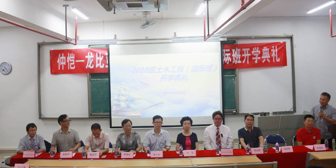 9月8日下午,仲恺-龙比亚大学2018级土木工程国际班开学典礼在白云校区407室顺利举行。学校校长程萍教授出席典礼并致辞。副校长朱立学、党委学生工作部部长李伟东、教务处处长石玉强、校团委书记熊友华、城乡建设学院领导班子成员以及专程远道而来的英国爱丁堡龙比亚大学国际交流学术总监Murray MacCallum、工程与建筑环境学院国际交流负责人Johnson Zhang博士出席了本次开学典礼。该院韦松林书记主持典礼。2018级土木工程国际班25名新生及部分家长、2017级土木工程国际班学生也参加了本次活动。