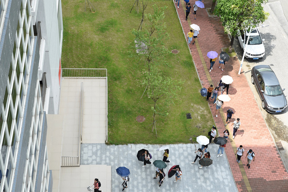 (海珠、白云校区的同学们一早赶往教学楼上课)