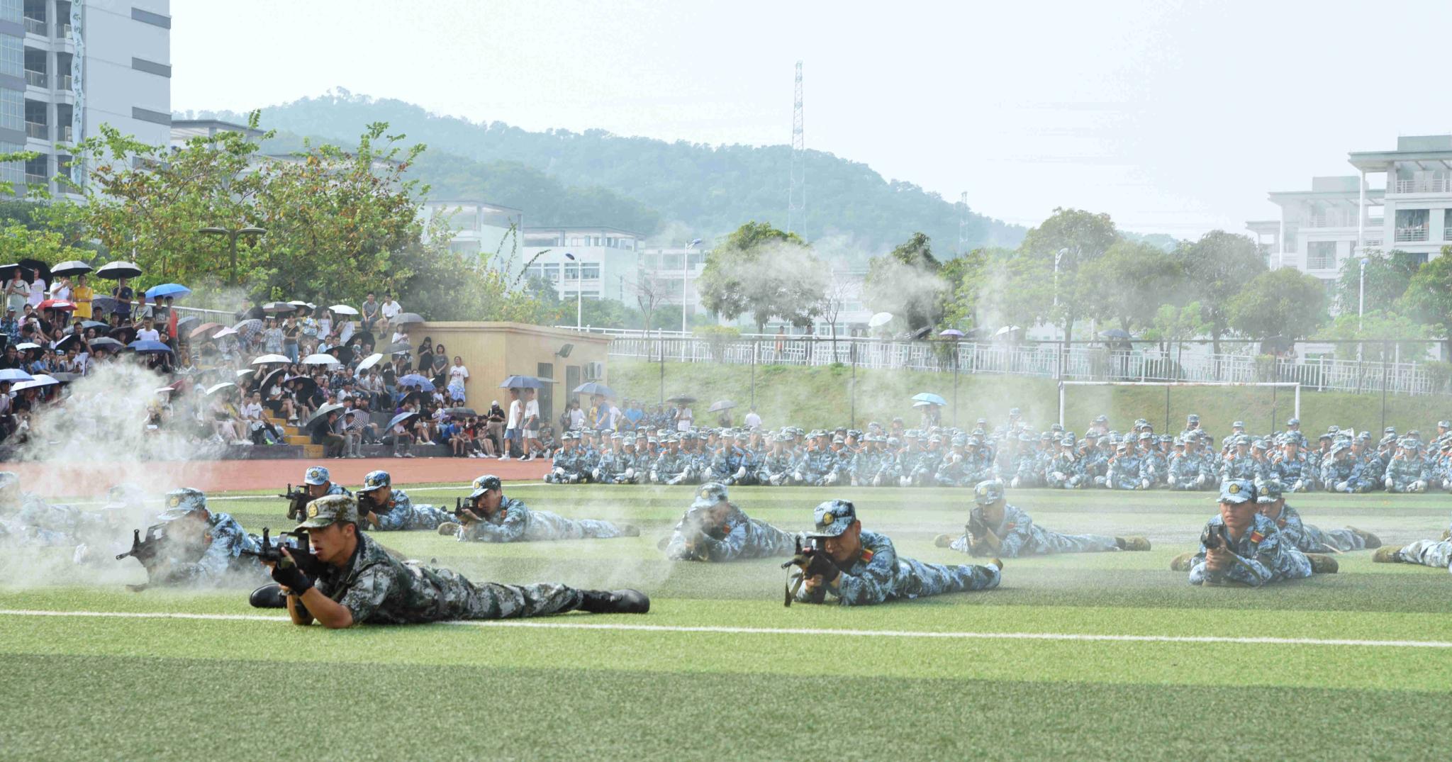 整场军训成果汇报分九个环节进行,分别为各院的分列式方阵、军体拳、棍术、女子刀术、海军旗语仪式、枪术的剧情演习及合唱。校保卫处组织安保人员进行校园安全反恐防暴消防演练、防火消防演习。