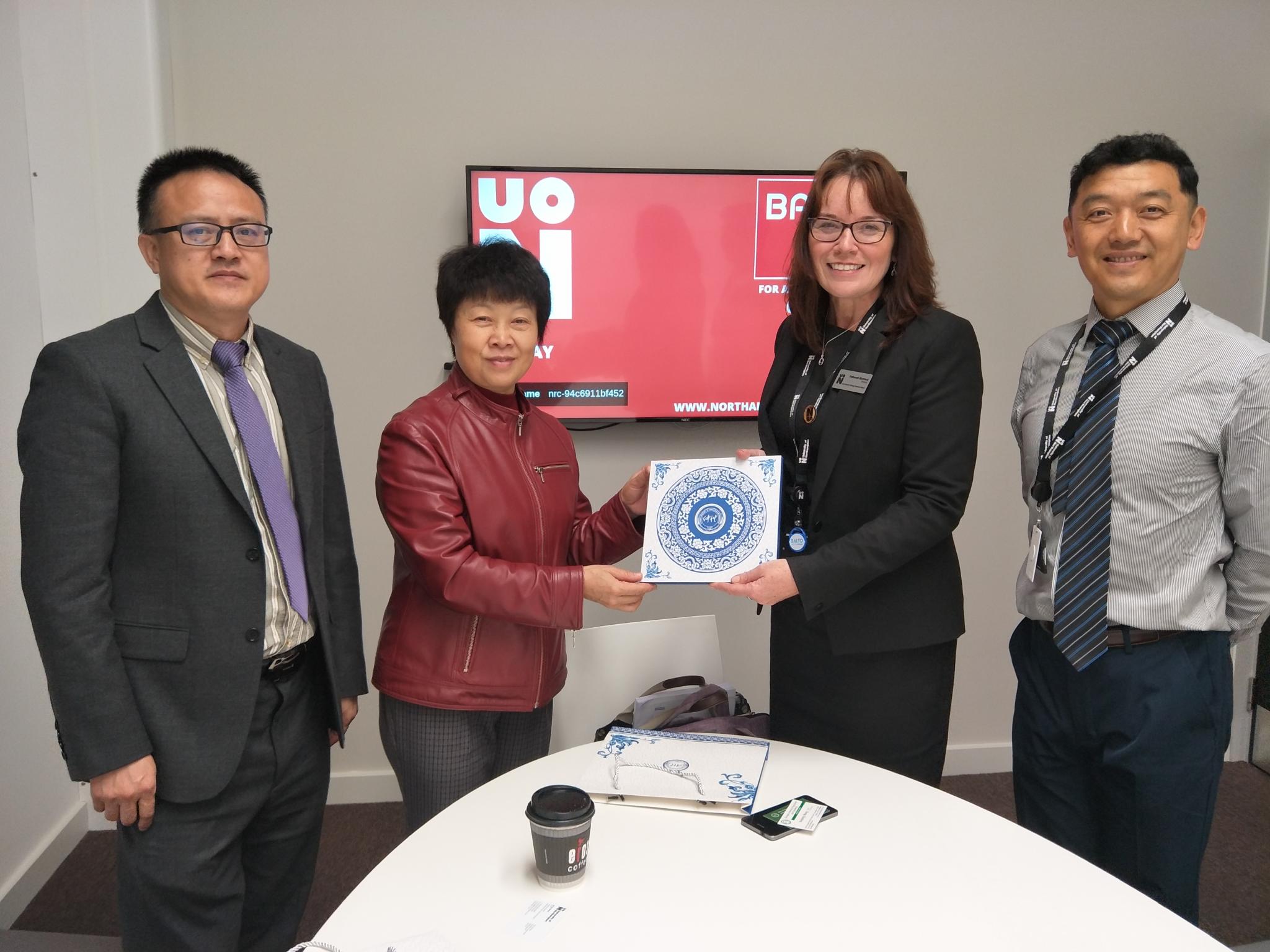 北安普顿大学于2016年底与我校签订交流合作协议,目前主要开展本科生一学期课程学习交流。此次是学校第一次派团访问该校,也是我校与北安普顿大学之间的首次访问交流,目的是想实地考察该校办学情况,探讨双方进一步合作的可能性。访问团一行参观了该校刚落成的新校区及学生会办公与活动场所,与北安普顿大学执行副校长Debirag Nattick及国际交流处负责人进行了会谈,就双方进一步开展合作的领域和方式等进行了探讨交流,在环境保护等专业开展本科生、硕士研究生联合培养和教师教学能力培训方面达成了合作意向。